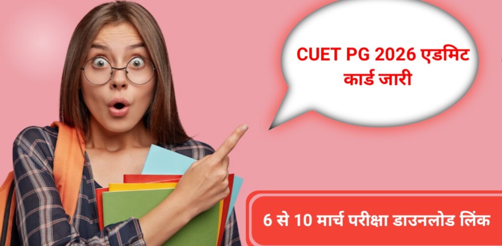 नमस्कार दोस्तों आज के इस आर्टिकल में आप लोगों का बहुत-बहुत स्वागत है आज के इस आर्टिकल में हम आप लोगों को CUET PG 2026 एडमिट कार्ड जो जारी हुआ है उसके बारे में बताने वाले हैं इसके साथ ही आपका एग्जाम कब होगा आप अपना एडमिट कार्ड कैसे डाउनलोड कर सकते हैं